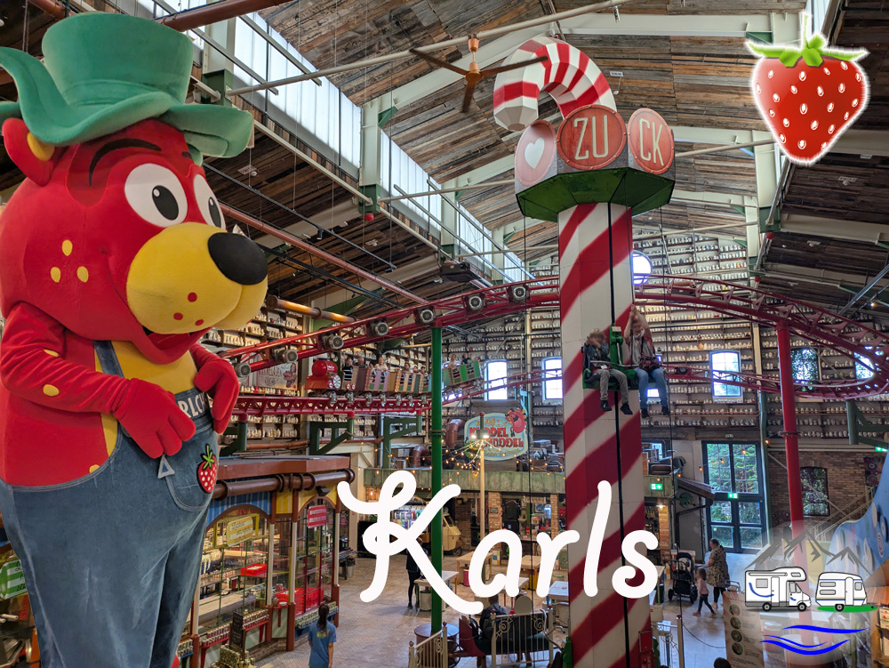 Karls Erlebnisdorf ist Spielplatz, Freizeitpark, urige Gastronomie, Shopping-Erlebnis, Schau-Manufaktur und Kleintier-Zoo in einem. Themenschwerpunkt: Erdbeeren. Kostenloser Eintritt möglich. Mehrere Standorte in Norddeutschland.