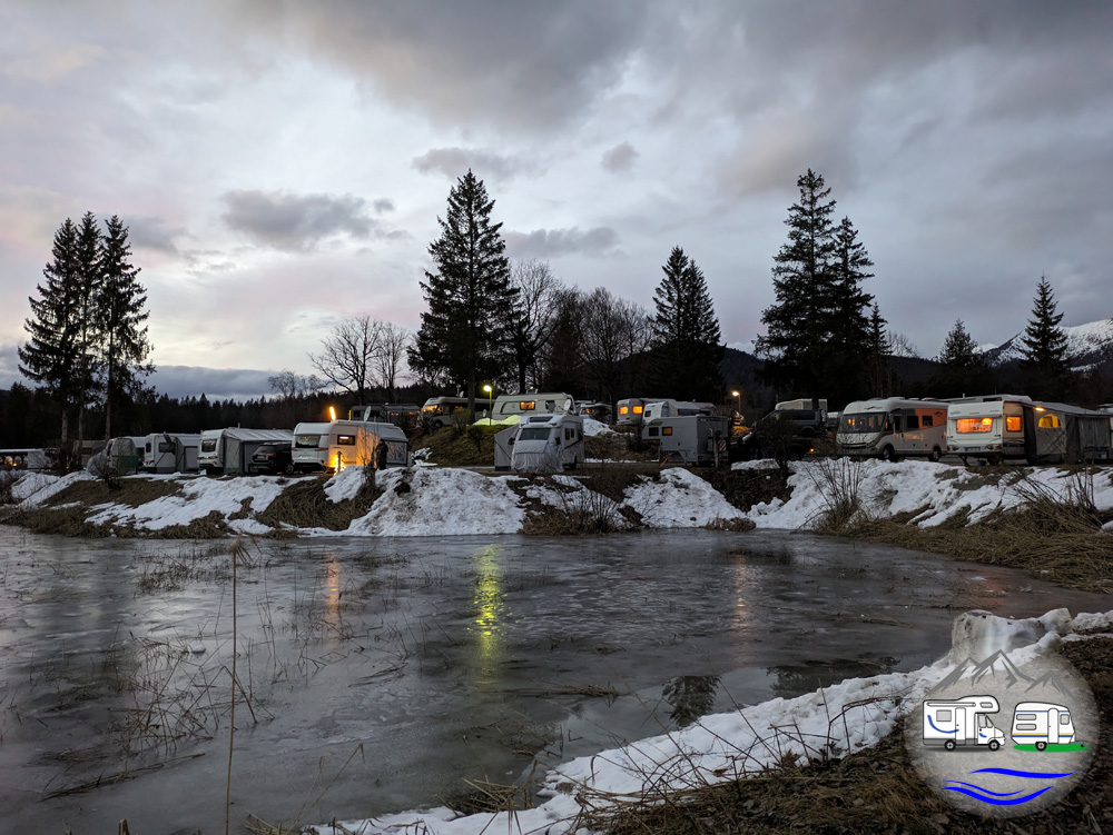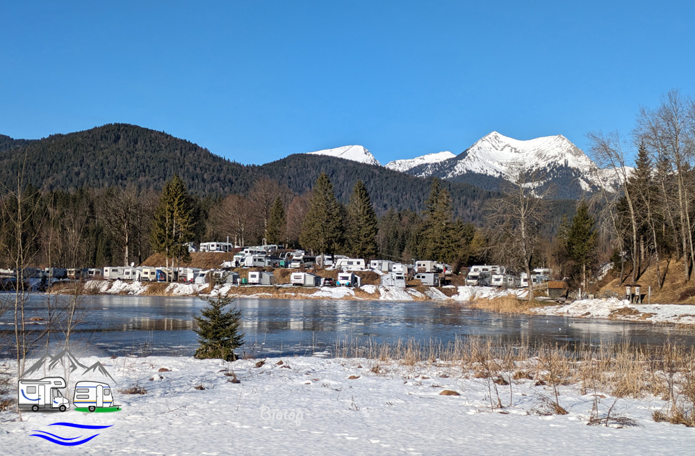 Der Alpen-Caravanpark Tennsee liegt östlich von Garmisch-Partenkirchen im Bayerischen Oberland. Er ist weiträumig von Bergen umgeben.