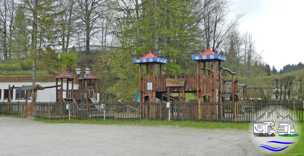 Der Spielplatz befindet sich vor der Schranke zwischen Parkplatz und Wohnmobilhafen. Er ist zum Schutz der Kinder umzäunt.