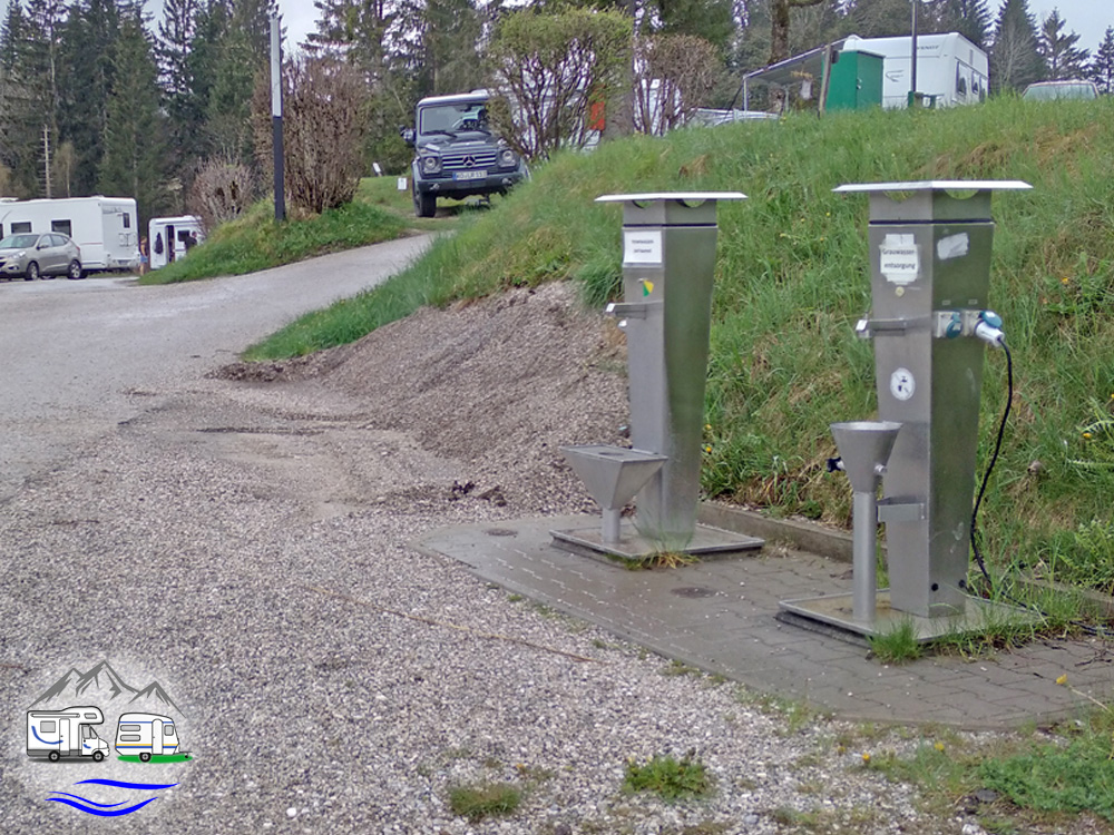 Grau- und Schwarzwasserentsorgungsstellen gibt es sowohl draußen als auch drinnen. Vor dem Wohnmobilhafen und am Seeufer stehen Wohnmobil-Entsorgungsstationen zur Verfügung.