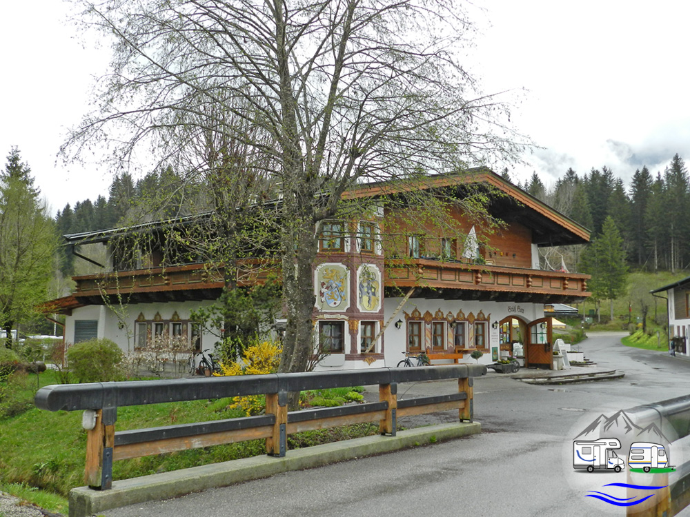 Die eigentliche Zufahrt zum Campingplatz ist die Brücke über den Kranzbach. Die Anmeldung/Rezeption befindet sich gleich im ersten Gebäude auf der linken Seite.