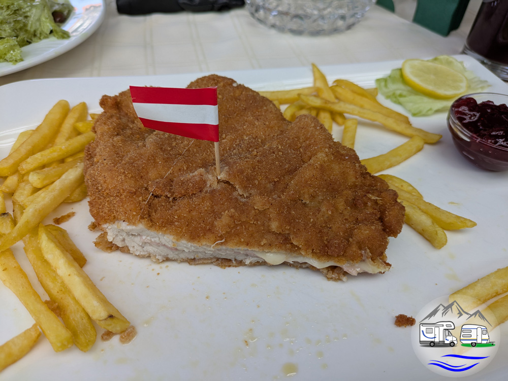 Wir aßen alle vier ein Cordon bleu, das sehr lecker schmeckte. Die Salatsoße dagegen war nicht nach meinem Geschmack.