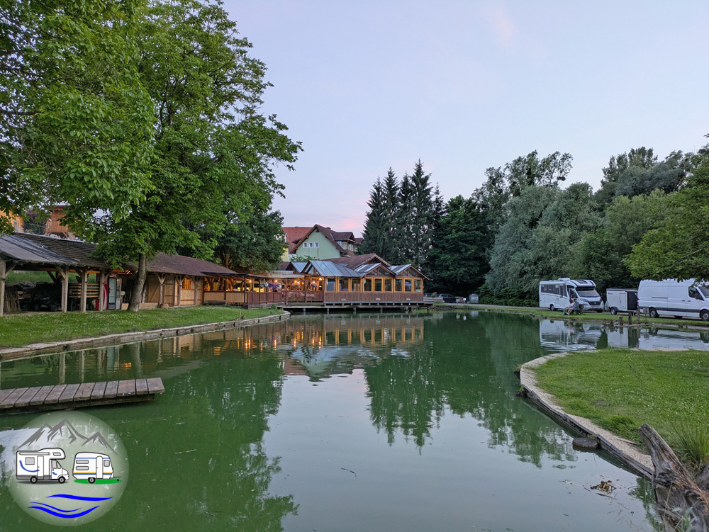 Schöner und günstiger Übernachtungsplatz für Wohnwagen und Wohnmobile mit kleiner Sanitäranlage in Österreich nahe der slowenischen Grenze. Gute Speisemöglichkeit in den Teichstub’n.