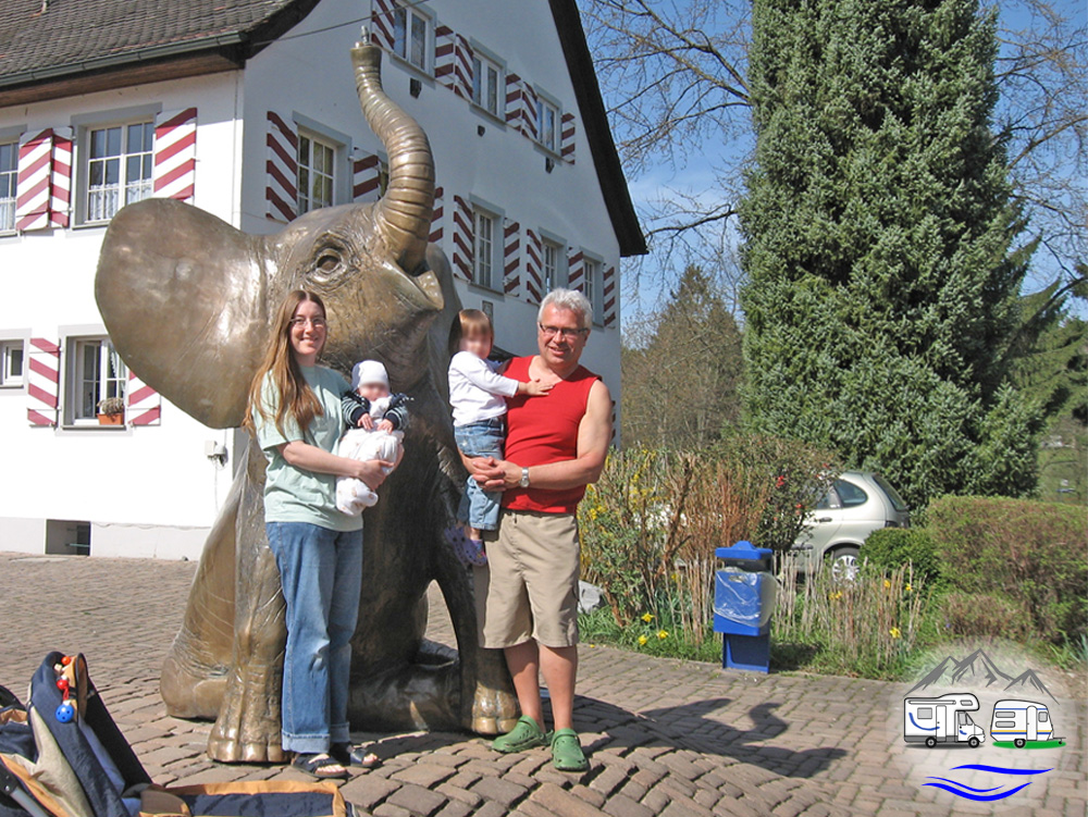 • Maskottchen des Platzes ist Fany, der Elefant – die Statue steht im Eingangsbereich des Campingplatzes