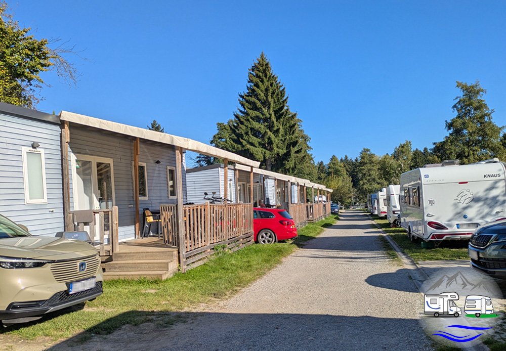 Über den Campingplatz können Mobilheime (Varia Homes) oder Mietwohnwagen gebucht werden.