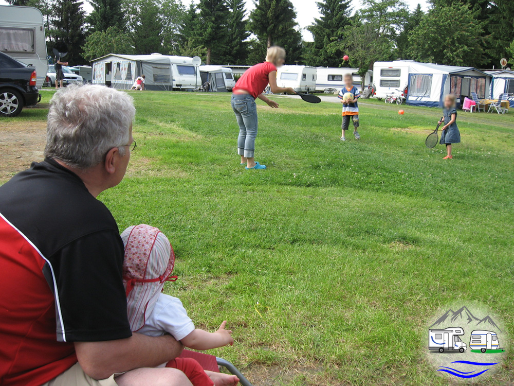 Mehrere Spielplätze stehen am Campingpark zur Verfügung, unter anderem ein Naturspielplatz mit Bach und Feuerstelle. Bei Sanitärhaus 5 stehen für Erwachsene auch ein paar Outdoor-Fitnessgeräte.