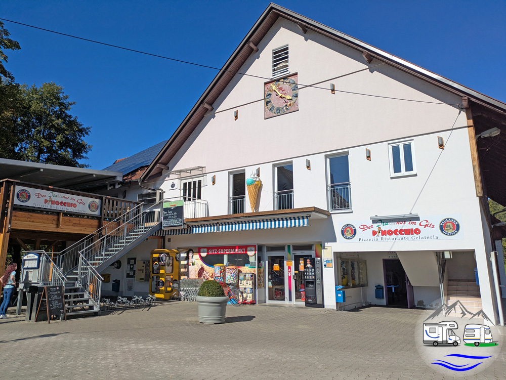 Der Campingpark hat einen kleinen Supermarkt mit relativ großer Auswahl an Backwaren und einer Getränkeecke. Preislich deutlich höher als außerhalb des Campingplatzes. Vor dem Laden steht ein Kaffeeautomat.
