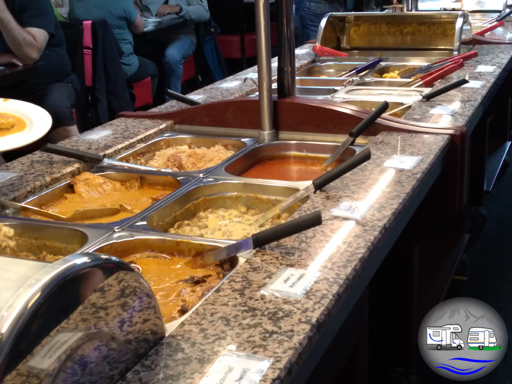 Es war das erste Mal, dass wir beim Griechen ein Buffet geboten bekamen. Hier konnten wir wahrlich schlemmen und mit mehreren Ouzos vor- und nachspülen. Natürlich aßen wir mehr, als uns guttat, aber es war einfach so lecker und die Auswahl so groß.