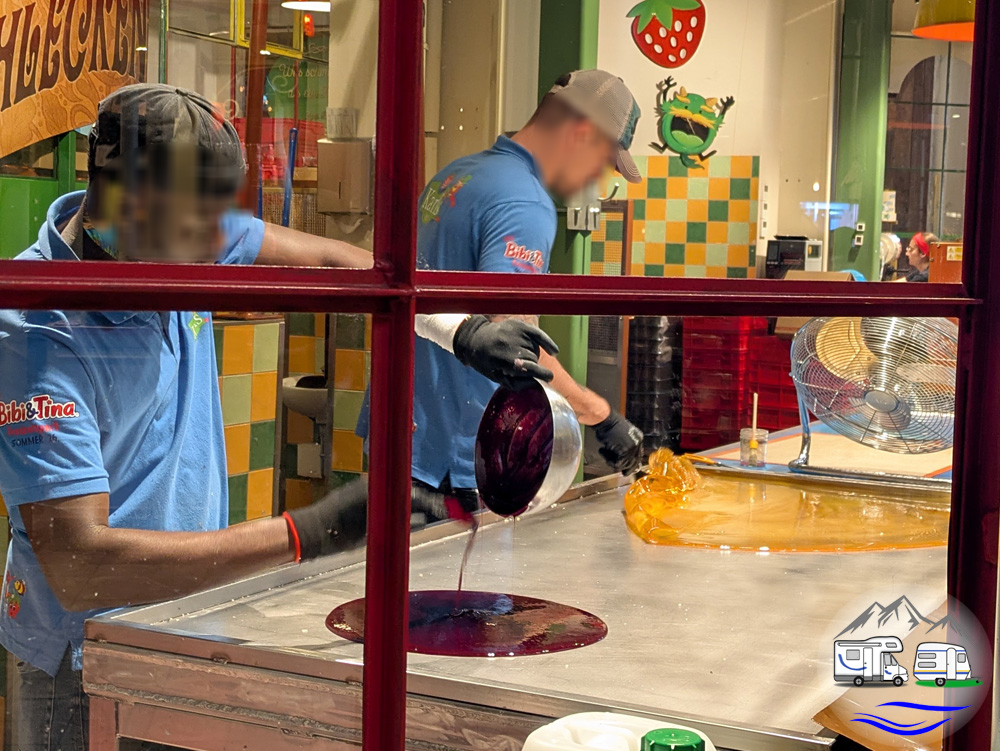 Wir blieben relativ lange bei der Bonbon-Manufaktur hängen. Das interessierte sogar unsere Teenies, die das bisher nur in Youtube-Videos gesehen hatten. Live ist eben doch anders. Und es ist ja auch interessant zu sehen, wie die leckeren Süßigkeiten entstehen, vor allem, wenn man am Ende probieren darf, kostenlos.