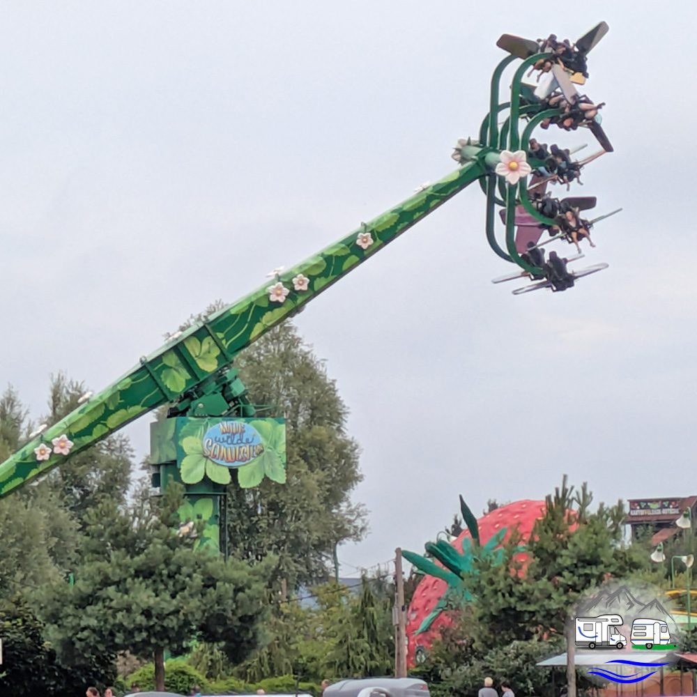 Sowohl drinnen als auch draußen gibt es Fahrgeschäfte und Spielmöglichkeiten. Geeignet für Kinder bis ca. 12 Jahre. Unser Adrenalin-Junkie fand sie jedenfalls zu langweilig, naja, bis auf „Majas Wilde Schwestern“. Ich dagegen fand die Vielfalt der Angebote richtig toll – ein Paradies für Familien: