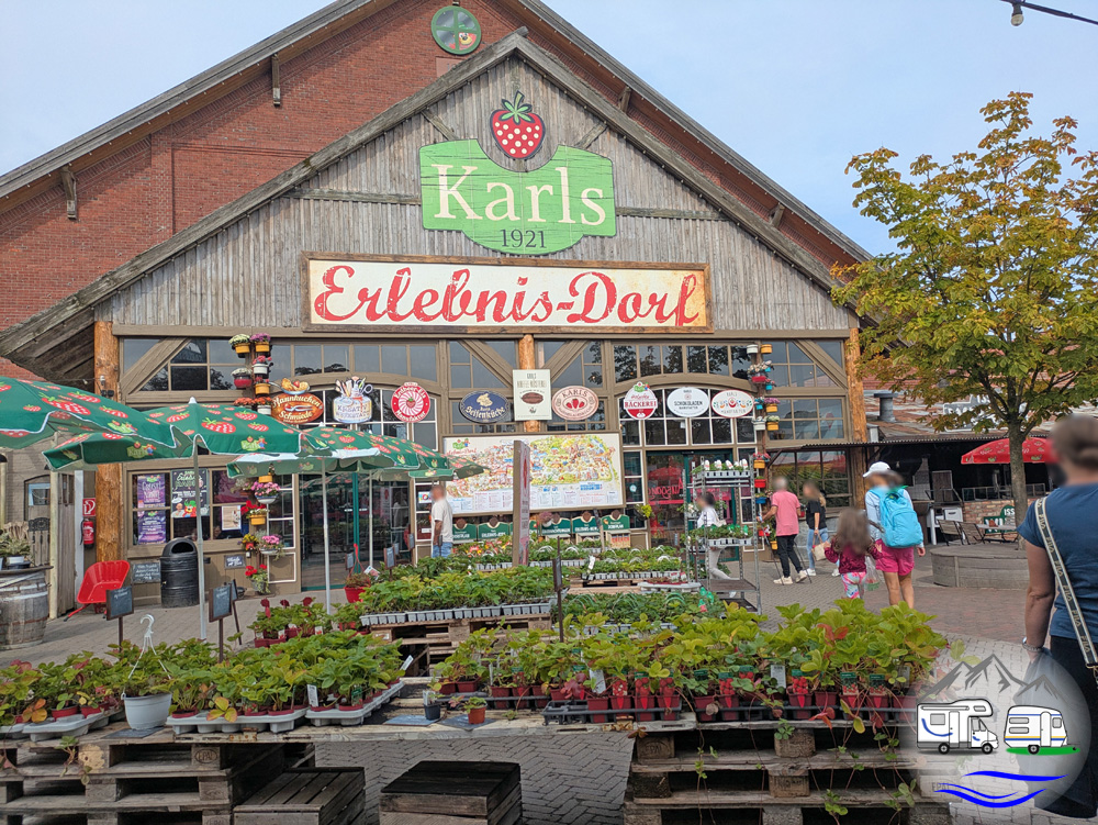 Karls Erlebnisdorf ist Spielplatz, Freizeitpark, urige Gastronomie, Shopping-Erlebnis, Schau-Manufaktur und Kleintier-Zoo in einem. Themenschwerpunkt: Erdbeeren. Kostenloser Eintritt möglich. Mehrere Standorte in Norddeutschland.