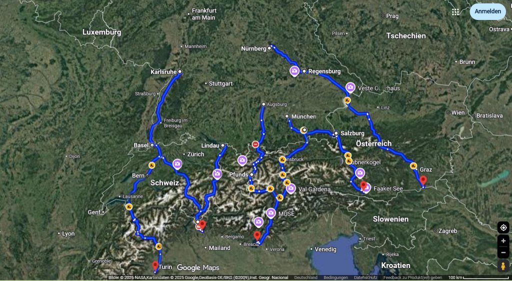 Routenplanung, unterschiedliche Alpenüberquerungsrouten, Stauvermeidungsstrategien: Das haben wir schon versucht, um staufrei in den Süden zu gelangen …