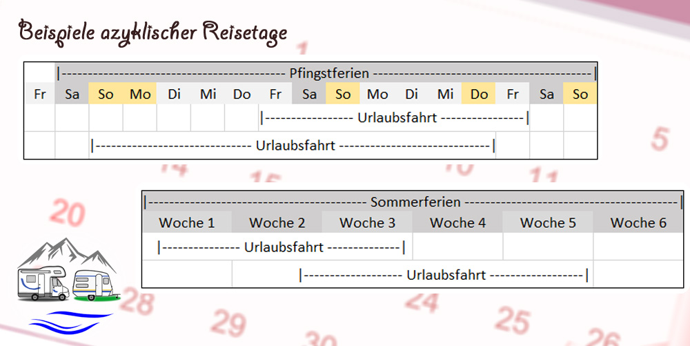 Wenn möglich, starten wir unsere Urlaubsfahrt nicht an einem dieser Tage, sondern erst einige Tage später. In den Sommerferien lässt sich dies leichter umsetzen, als zu Pfingsten mit begrenzter Feriendauer.
