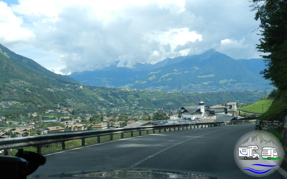 Vom Fernpass kommend lockt statt der Brennerautobahn auch die Strecke durch das Inntal und über den Reschenpass, um nach Südtirol zu gelangen. Wir wählten diesen Weg für unseren Urlaub im Fassa-Tal (Trentino). Die Strecke bis Pfunds im Inntal habe ich euch bereits beschrieben. Auch mit Gespann war sie gut zu fahren und wurde seit 2022 weiter ausgebaut. 2025 wählten wir sie für unsere Heimfahrt. Beide Male übernachteten wir beim Via Claudia Camping, einmal am Campingplatz und einmal am Wohnmobilpark.