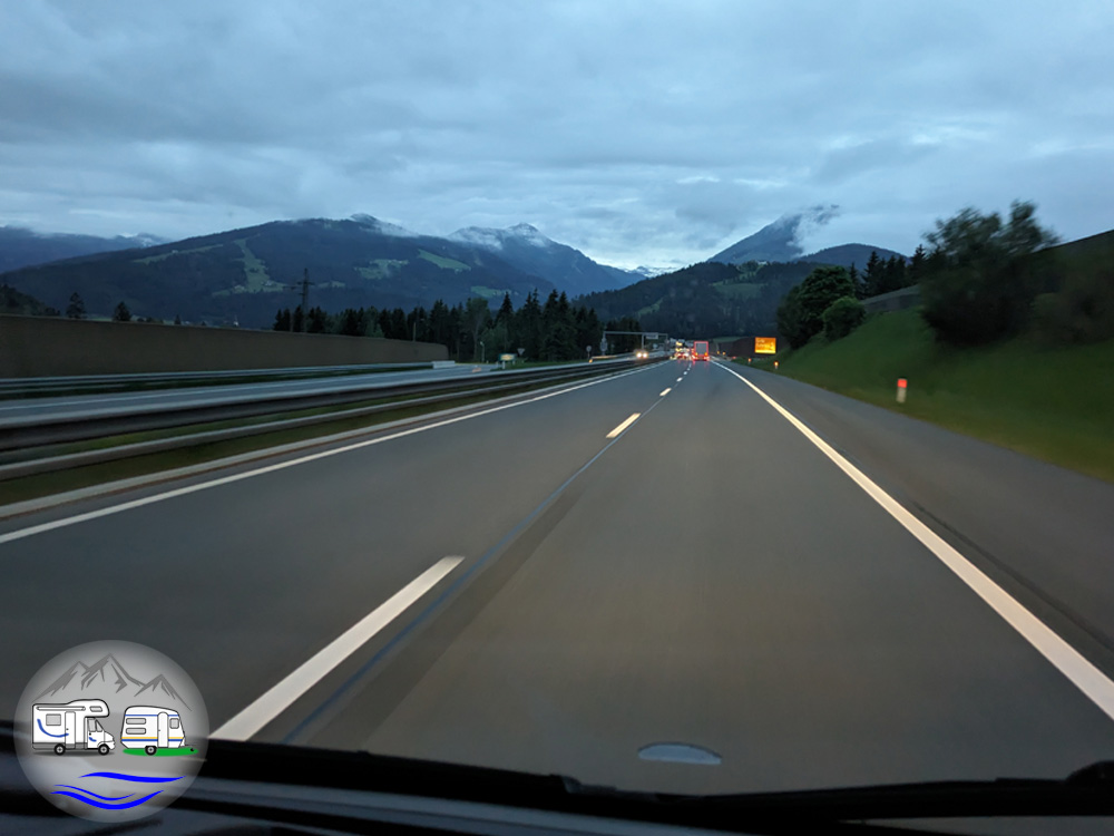 Wer sich traut, kann natürlich auch auf einem Autobahnrasthof in seinem Fahrzeug schlafen. 2024 fanden wir bei unserer Frühstückspause um 5:30 Uhr an der ASFINAG Raststation Lungau einige noch schlafende Wohnmobile und Gespanne vor. Aus Sicherheitsgründen würden wir das aber nur im Notfall tun.