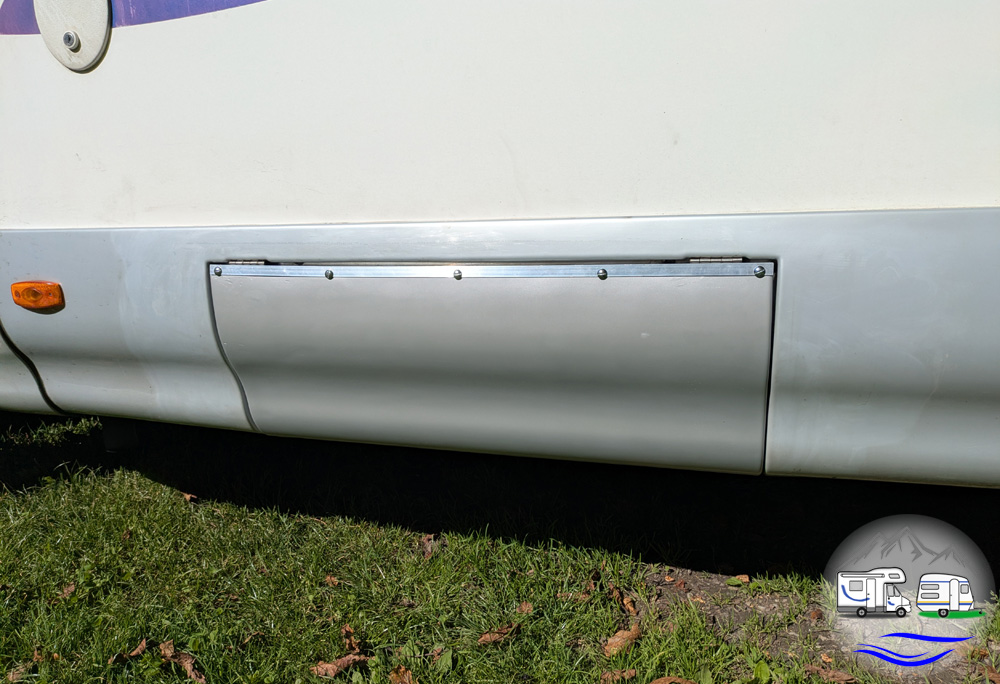 - Viel Zeit steckte mein Mann ins Aufhübschen der von den Vorbesitzern zugeklebten Außenklappe. Er erneuerte die ausgebrochenen Scharniere, schliff die Oberfläche ab und verpasste ihr mit Sprühlack einen neuen Look. Da in diesem Staufach nicht viel Platz ist, werden wir die Klappe wohl nicht nutzen, aber jetzt sieht es wenigstens ordentlich aus.