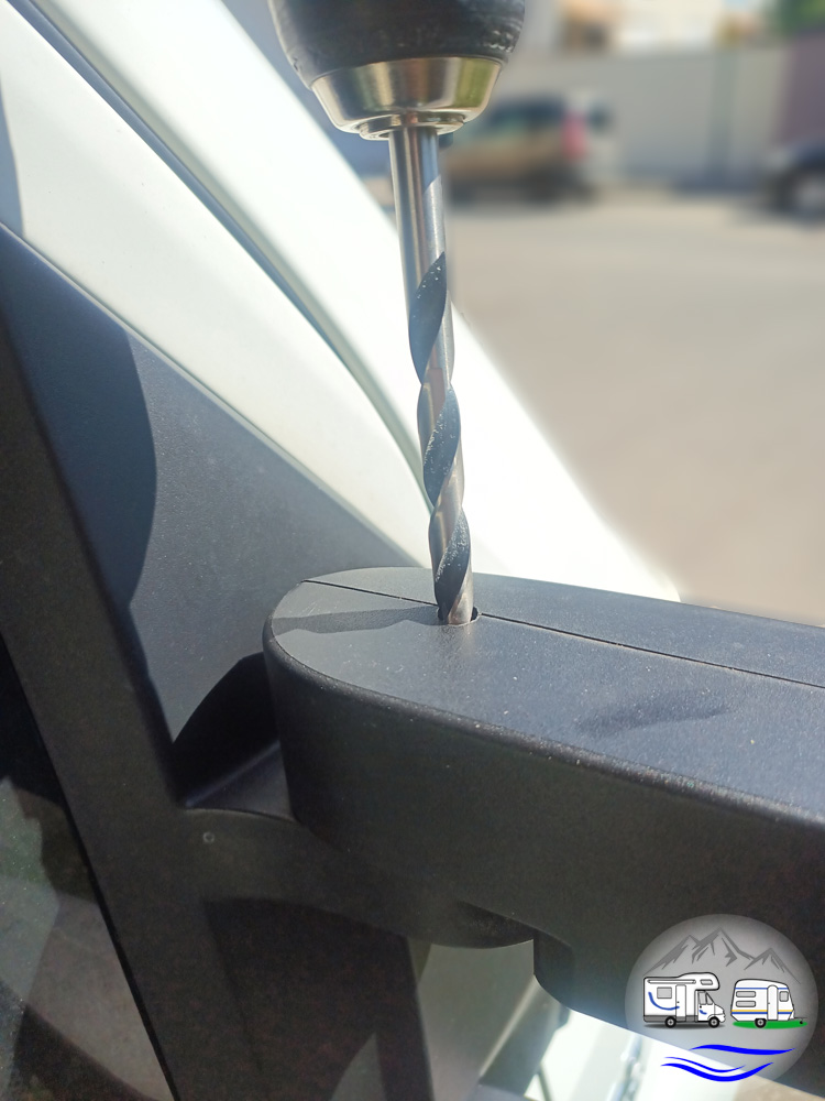 - Ferdinand bohrte die Halterung des rechten Außenspiegels an, sodass er an die Stellschraube kam.