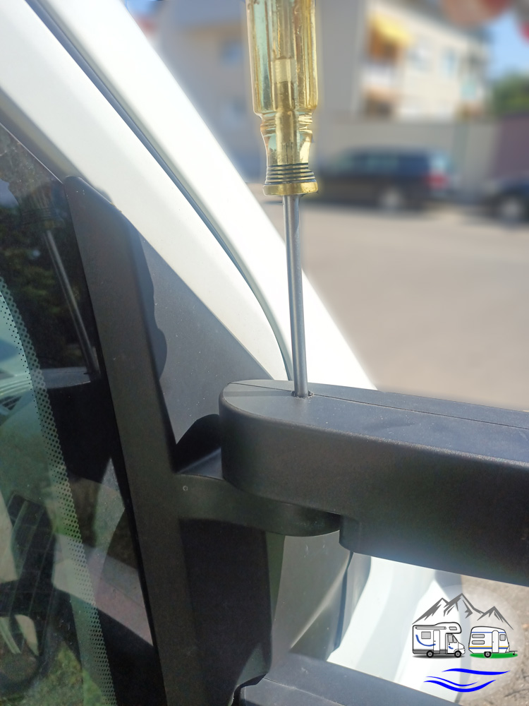 Für das Problem, dass sich das Spiegelgehäuse des rechten Außenspiegels im Fahrtwind Richtung Fahrzeug bewegt, hatten wir bereits eine Lösung gefunden. Leider entpuppte sie sich als nicht dauerhaft. Aber auch hier halfen DIY-Videos: