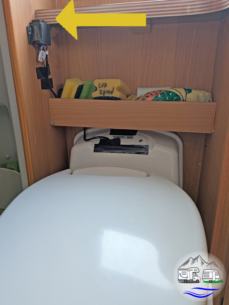 Schöner Nebeneffekt des defekten Wasserhahns: Ferdinand entdeckte hinter dem Waschbecken, den FI-Schutzschalter für den Landstrom.