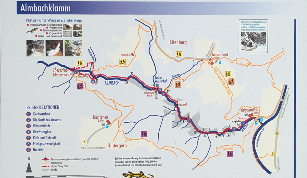 Der Weg durch die Almbachklamm wäre auf jeden Fall bis zur Theresienklause weitergegangen. Die weitere Wegstrecke erschien mir zwar nicht mehr so interessant, aber wer weiß, was ich verpasst habe!?