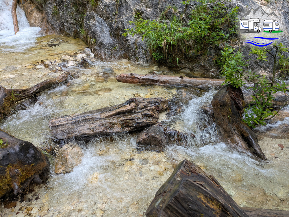 So eng, wie die Berge hier zusammenrückten, konnte ich mir nur schwer vorstellen, dass früher Baumstämme durch die enge Klamm geflößt wurden.