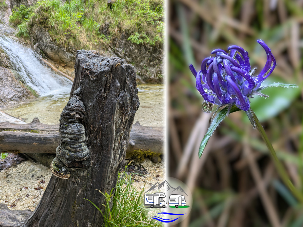 Treppenstufen unter überhängenden Felsen, Brücken über dem schäumenden Almbach, kleine und größere Pflanzen, die sich an die senkrechten Hänge klammerten – die Almbachklamm bot uns ein beeindruckendes Naturerlebnis.