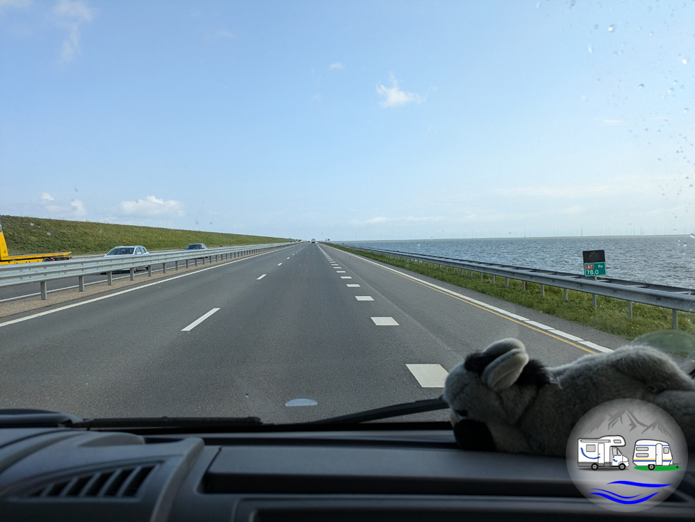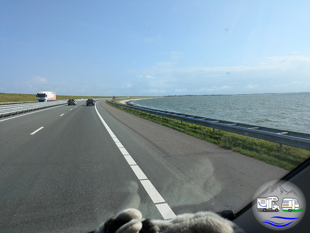 25 Minuten benötigten wir, um über den Deich zu fahren! Und das auf der Autobahn! Beeindruckend.