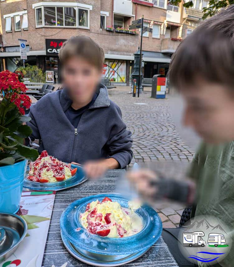 In Winterswijk fuhren wir den Wohnmobilstellplatz Camperplek Winterswijk Centrum an, auf dem wir problemlos unterkamen. Von hier aus spazierten wir in die Stadt. Es war früher Abend und die Innenstadt wie ausgestorben, die Geschäfte bereits alle geschlossen. Wir waren allerdings auf der Suche nach einer Eisdiele. Leckeres Eis war uns in diesem Urlaub nämlich nur selten begegnet. Hier hatten wir endlich Glück, bekamen Spaghetti-Eis und anderes.