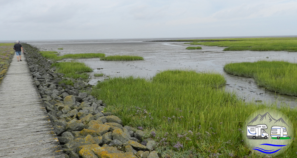 kein Strand, nur ein Steg durch die Salzwiesen